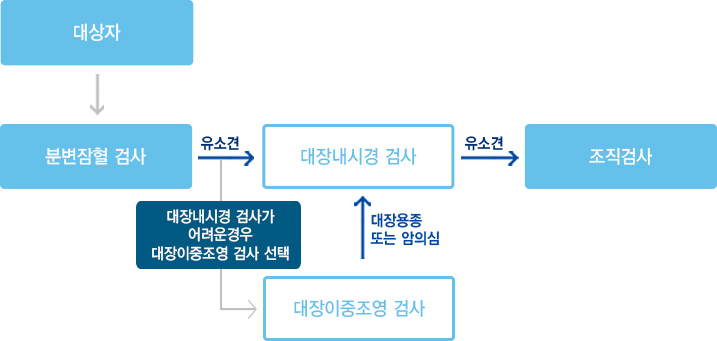(대장내시경 검사가 어려운 경우, 대장이중조영검사 선택 가능)